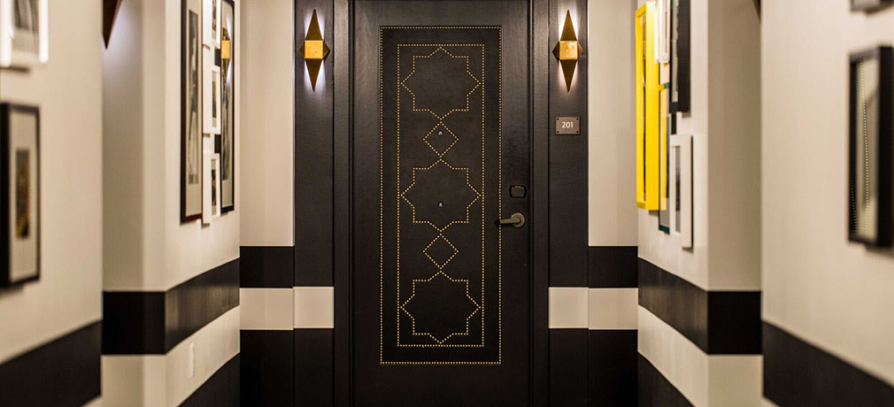 Ray Double Entry | “A fabulous door! Made of walnut with inlaid brass, this door is the ultimate in elegance. Referencing the spirit of the Art-Deco movement, it is exceptional yet simple at the same time.”
