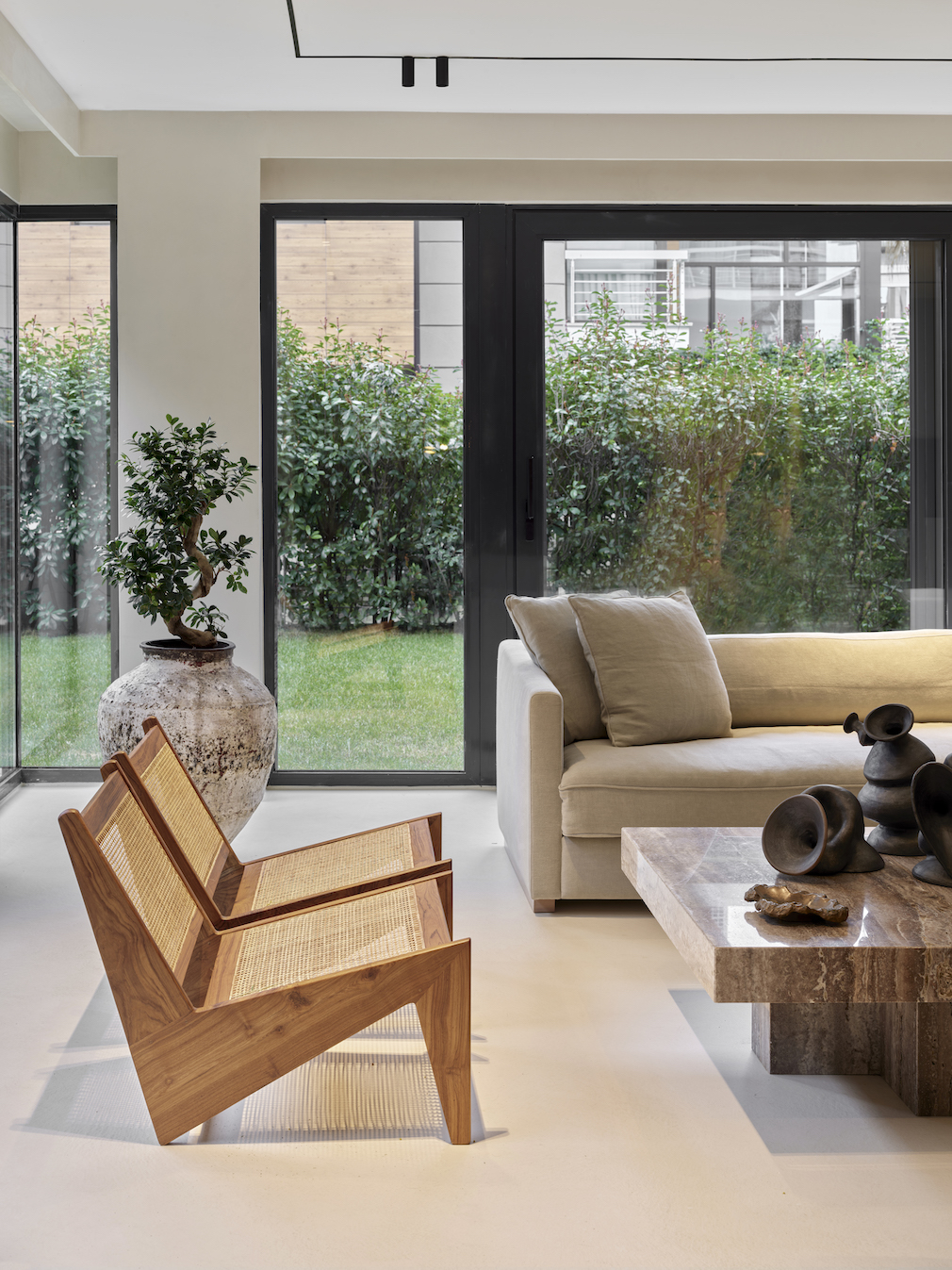 SANAYI313 co-founder and creative director Enis Karavil led the design of this seven-bedroom home, creating a liveable and pared-back, yet sophisticated space for a young couple and their growing family. The fashion atelier-turned-design studio delivers a Turkish sensibility in its projects from Europe to the United States, with each integrating distinctive furnishings from the brand’s own home product line.