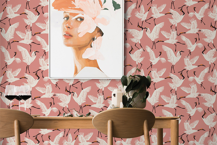 Part of the collection’s timelessness is its centering of nature. This ranges from fields of flowers in Daisy Bloom to the rippling leaves of Feather Palm. “We have more wildlife that we let out of the bag too early, as we loved it so much,” the Novogratz admit. “Zebras in Love—from the last addition to our Tempaper collection—was also inspired by this home.” And though their equine spirit is captured here again in the new Zebra Marble pattern, this time, pride of place belongs to creatures of the air. “The favorite this time is the Family of Cranes pattern,” the Novogratz say. “We love them all, but this was the first one we installed into our daughter Tallulah’s first NYC apartment.”