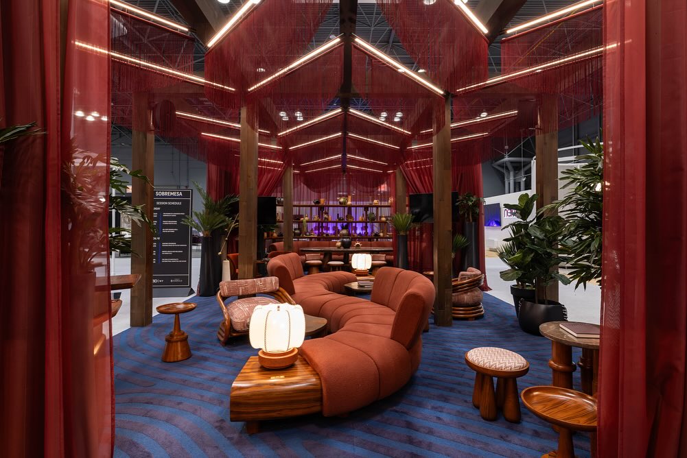 Lighting from Studio M can add a special touch to any space. That included the WestEdge Design fair, where their scintillating illuminations were appreciated throughout. Studio M was helping to illuminate minds, as well — joining forces with aspire design and home to present a panel addressing The Great Design Divide: East Coast Elegance vs. West Coast Chill. Moderated by aspire’s own Paul Hagen, the panel considered design gestures often associated with each coast, the language we use to describe them, how they’re represented both in design spaces and in culture more broadly — plus strategies to channel these coastal vibes each to please clients. Looking poised and offering fun and insightful opinions, the panel included Rafael Kalichstein and Joshua Rose of Citizen Artist, John Ike of Ike Baker Velten, and Kerrie Kelly of Kerrie Kelly Studio — whose team also designed the space where the discussion took place.