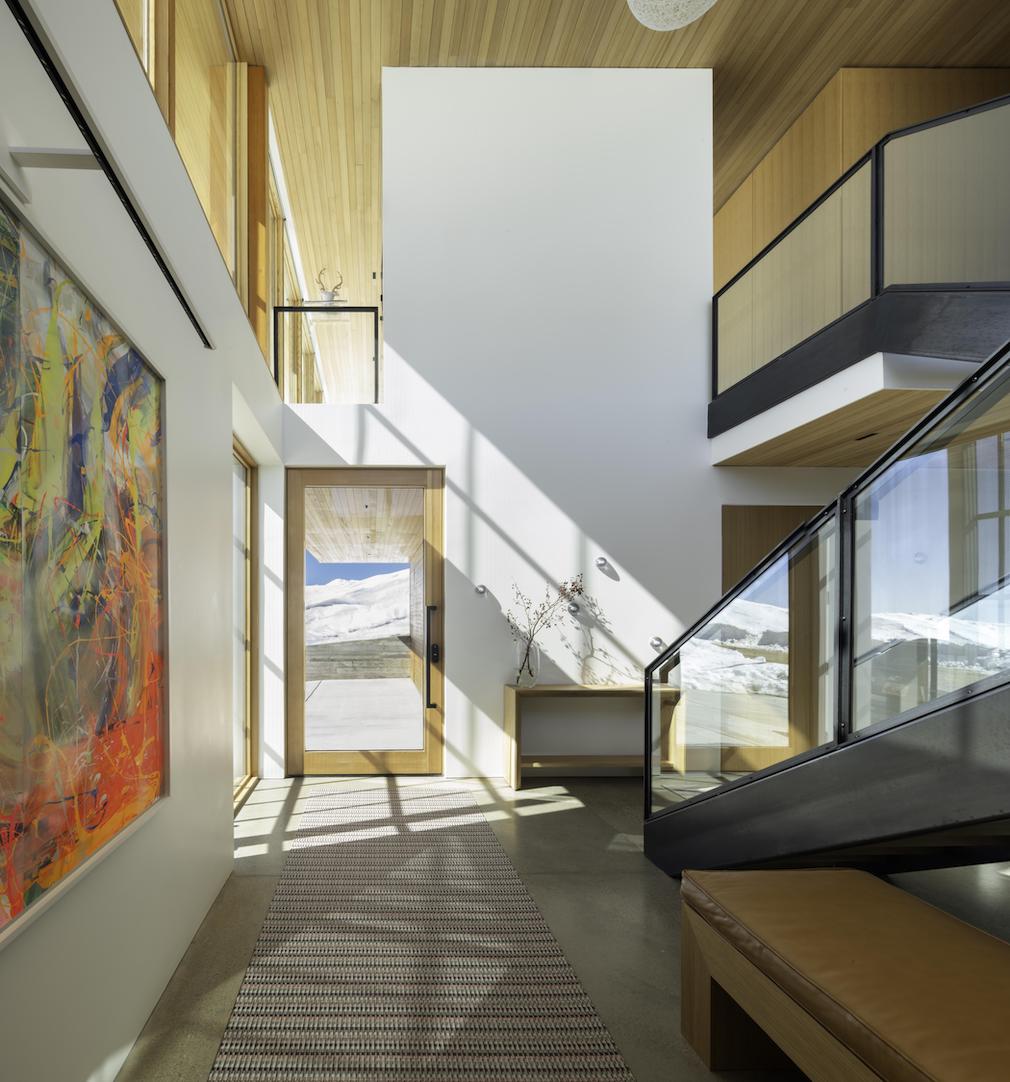Due to its remote location, the home is run completely off of propane, and heated by highly-efficient radiant heat throughout. The southern façades feature overhangs, and temperatures are controlled with operable windows at key locations to provide any necessary cooling, ensuring a sustainable design approach.